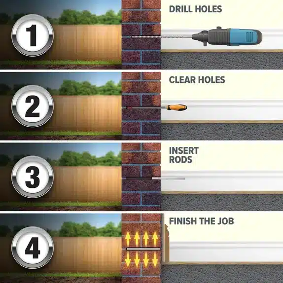 A Dryrod vízszigetelő rúd modern, száraz technológiájú megoldás a felszívódó nedvesség ellen. Könnyen alkalmazható, megbízható és hosszú távon hatékony utólagos falszigeteléshez.
